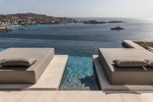 The Skyvilla Mykonos - A Landmark Property with Breathtaking Views of the Psarou bay, que tiene vistas al mar, ofrece alojamiento con terraza y balcón a unos 4,4 km de Pequeña Venecia. El alojamiento, que está a 4,4 km de Molinos de Mykonos, dispone de piscina al aire libre y parking privado gratis.