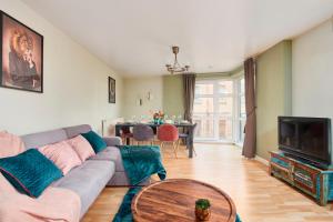 Featuring a private entrance, this spacious apartment also is comprised of 1 living room, 2 separate bedrooms and 2 bathrooms with a hairdryer. In the well-equipped kitchen, guests will find a stovetop, a refrigerator, an oven and a microwave. The apartment offers a washing machine, a dining area, an electric kettle, heating and a flat-screen TV. The unit offers 4 beds.