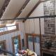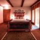 This upstairs room has a private entrance, a fireplace and a seating area, as well as tall windows with views.