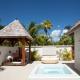Las villas presentan una decoración exótica en madera con esculturas polinesias talladas a mano y disponen de aire acondicionado y baño de mármol italiano con bañera y ducha de efecto lluvia. Algunas villas incluyen piscina privada, bañera de hidromasaje o ducha al aire libre.