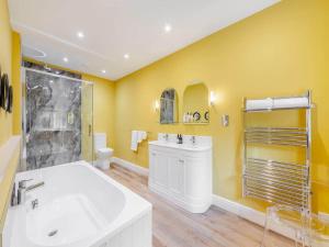 The spacious apartment with a terrace and garden views has 3 bedrooms, 2 living rooms, a TV, an equipped kitchen with a dishwasher and an oven, and 3 bathrooms with a bath. Guests at The Stables at Romaldkirk Hall can enjoy the surroundings from the outdoor dining area or stay warm by the fireplace on colder days. The accommodation is non-smoking.