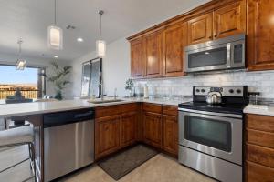 This suite features a hot tub and a fireplace. Guests will find a stovetop, a refrigerator, a dishwasher and kitchenware in the kitchen. The suite also comes with a barbecue. The spacious air-conditioned suite features a TV with cable channels, a washing machine, a tea and coffee maker, a dining area as well as mountain views. The unit has 4 beds.