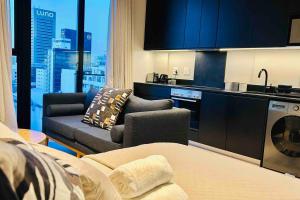 L'appartamento climatizzato di The Tokyo 1211 comprende 1 camera da letto, TV a schermo piatto e cucina con forno.