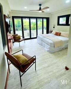 Featuring a private entrance, this air-conditioned villa is comprised of 2 living rooms, 3 separate bedrooms and 3 bathrooms with a walk-in shower and a hairdryer. Meals can be prepared in the kitchen, which comes with a stovetop, a refrigerator, kitchenware and a microwave. Boasting a balcony with garden views, this villa also offers a coffee machine and a flat-screen TV with streaming services. The unit offers 3 beds.
