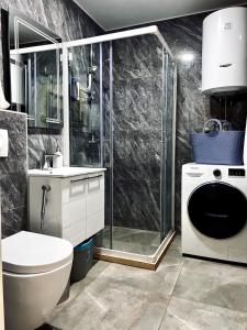 Guests can make meals in the kitchen that is fitted with a stovetop, a refrigerator, kitchenware and an oven. The spacious apartment offers air conditioning, a washing machine, a private entrance, a wardrobe and a flat-screen TV. The unit has 1 bed.
