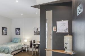 The studio provides a private entrance, as well as a private bathroom featuring a shower. The studio features a balcony. The unit offers 3 beds.