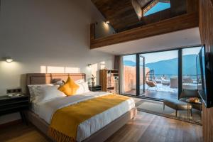 Providing free toiletries and bathrobes, this double room includes a private bathroom with a shower, a hairdryer and slippers. The spacious air-conditioned double room provides a flat-screen TV with satellite channels, soundproof walls, a tea and coffee maker, a dining area as well as mountain views. The unit offers 1 bed.