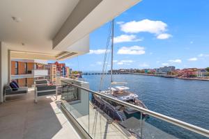 Apartament z tarasem posiada dwie sypialnie, dwie łazienki z prysznicem, salon z TV oraz kuchnię z lodówką i zmywarką. Z okien obiektu roztacza się widok na miasto. Ręczniki i pościel są dostępne w apartamencie The Wharf 7E city apartment, overlooking Annabay, downtown Willemstad.