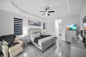 This holiday home features a pool with a view. Featuring a private entrance, this spacious holiday home also is comprised of 4 bedrooms, a seating area and 3 bathrooms with a bath and a shower. Guests will find a stovetop, a refrigerator, a dishwasher and an oven in the kitchen. The holiday home also has a barbecue. The air-conditioned holiday home offers a flat-screen TV with streaming services, a washing machine, a tea and coffee maker, a dining area as well as lake views. The unit offers 4 beds.