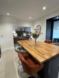The hot tub and fireplace are the special features of this holiday home. Featuring a private entrance, this holiday home consists of 2 living rooms, 1 separate bedroom and 2 bathrooms with a bath and a shower. Meals can be prepared in the well-fitted kitchen, which is equipped with a stovetop, a refrigerator, a dishwasher and kitchenware. The holiday home features tiled floors, a seating area with a flat-screen TV, a washing machine, a dining area as well as garden views. The unit offers 5 beds.