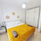 Das The Yellow Apartment in Durres bietet einen Balkon, 1 Schlafzimmer, Wohnzimmer und eine Küche mit Kühlschrank und Ofen. In dieser Ferienwohnung werden Handtücher und Bettwäsche angeboten.