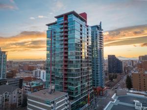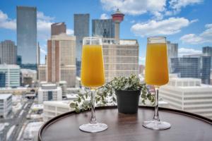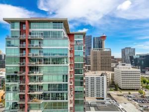 В этих апартаментах есть телевизор с кабельными каналами, несколько спален (2), полностью оборудованная кухня и ванная комната (1). Комплекты постельного белья и полотенец доступны для гостей объект размещения. С патио the YYC Lookout Tower & City Vibes 2BR w Parking виден город.