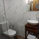 Prostorné apartmány s výhledem do zahrady mají dřevěný nábytek a podlahy, ložnici, kuchyň, koupelnu a obývací pokoj s krbem a LCD TV.