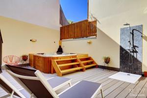 The hot tub is a top feature of this holiday home. Boasting a private entrance, this air-conditioned holiday home comes with 1 living room, 2 separate bedrooms and 1 bathroom with a walk-in shower and a hairdryer. Meals can be prepared in the kitchen, which features a stovetop, a refrigerator, a dishwasher and kitchenware. The spacious holiday home features a washing machine, a tea and coffee maker, a seating area, a flat-screen TV with streaming services, as well as sea views. V této ubytovací jednotce se nachází 3 postele.