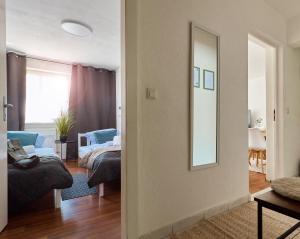 Featuring a private entrance, this apartment is comprised of 1 living room, 2 separate bedrooms and 1 bathroom with a shower and a hairdryer. The well-fitted kitchen has a stovetop, a refrigerator, a dishwasher and kitchenware. This apartment features a washing machine, flat-screen TV with streaming services, garden views, as well as chocolate for guests. The unit offers 4 beds.
