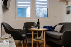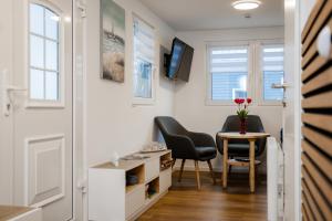 Questa casa vacanze con terrazza e vista sulla piscina presenta 2 camere da letto, un soggiorno, una TV a schermo piatto, una cucina con frigorifero e lavastoviglie e 1 bagno con doccia. La dotazione di questa casa vacanze presso Tiny Haus Boddenblick include lenzuola e asciugamani.