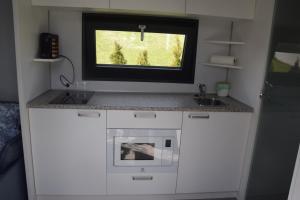 - Small kitchen area,