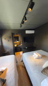 Este apartamento de 1 dormitorio tiene aire acondicionado y cuenta con zona de estar, TV de pantalla plana y cocina con nevera. El apartamento Tiny House Berlim | Gramado | Lareira dispone de toallas y ropa de cama.