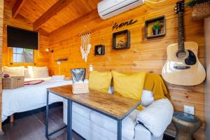 Obiekt Tiny house deluxe para escapada con Jacuzzi oferuje klimatyzowaną sypialnię i w pełni wyposażoną kuchnię z lodówką. W domu wakacyjnym Tiny house deluxe para escapada con Jacuzzi dla Gości przygotowano ręczniki i pościel.