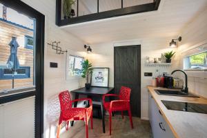 W domu wakacyjnym Tiny House Nr 4 zapewniono 2 sypialnie, 1 łazienkę, pościel, ręczniki oraz w pełni wyposażoną kuchnię. W Tiny House Nr 4 Goście mają do dyspozycji telewizor i taras z widokiem na ogród.