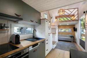 W domu wakacyjnym zapewniono kilka sypialni (2), kuchnię z pełnym wyposażeniem, w tym lodówką oraz zmywarką, a także łazienkę (1) z prysznicem i bezpłatnym zestawem kosmetyków. W domu wakacyjnym Tiny House Nr 5 dla Gości przygotowano ręczniki i pościel.