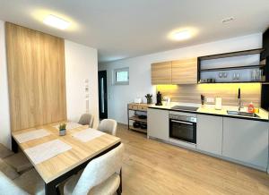 El apartahotel ofrece terraza, zona de estar, TV de pantalla plana, zona de cocina totalmente equipada con nevera y lavavajillas, y baño privado con ducha y secador de pelo. Tiny House Village Löffingen dispone de horno, fogones y tostadora, así como de hervidor y cafetera.