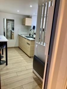 - Small kitchen area