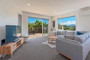The spacious holiday home with a terrace and sea views has 3 bedrooms, a living room, a flat-screen TV, an equipped kitchen with a dishwasher and an oven, and 2 bathrooms with an a bath or shower. Towels and bed linen are available in the holiday home at the property. Tipi Haere includes an outdoor dining area.