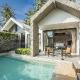 Each villa, designed with striking beams and high-pitched roofs, captures the essence of Thai architecture, while hand-painted feature walls showcase a different mural in every room, ensuring no two stays are ever the same. The large private pools in the villas provide the perfect retreat, with stylish outdoor furnishings that will have your camera snapping away at every corner.