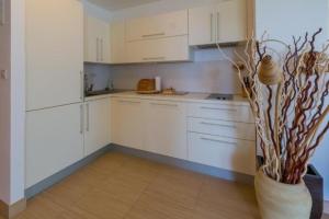 Diese Ferienwohnung ist versehen mit einem TV. Die Küchenzeile ist ausgestattet mit einem Kühlschrank und einem Geschirrspüler, einer Mikrowelle sowie einer Kaffeemaschine und einem Wasserkocher.
