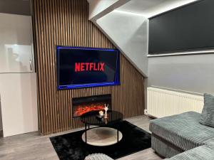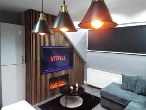 Pokoje: 1The fireplace is the standout feature of this apartment. This spacious apartment includes 1 living room, 1 separate bedroom and 1 bathroom with a walk-in shower and free toiletries. The fully equipped kitchen has a stovetop, a refrigerator, kitchenware and an oven. The apartment offers a washing machine, soundproof walls, a seating area, a flat-screen TV with streaming services, as well as garden views. V této ubytovací jednotce se nachází 1 postel.