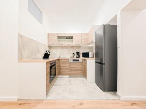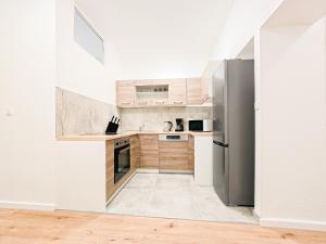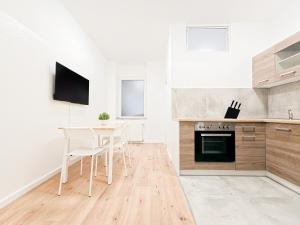 Das Tolstov Apartments - 1 Room Apartment - Citycenter - 25 Min to Messe DUS umfasst ein Schlafzimmer, eine Küche mit Kühlschrank und Geschirrspüler sowie ein Bad mit Dusche, Haartrockner und Waschmaschine. In dieser Ferienwohnung werden Handtücher und Bettwäsche zur Verfügung gestellt.