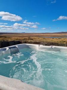 This holiday home features a hot tub and a fireplace. The fully equipped kitchen has a stovetop, a refrigerator, a dishwasher and an oven. The holiday home features a flat-screen TV, a washing machine, a private entrance, heating as well as garden views. The unit has 2 beds.