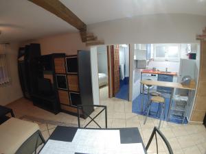 - Small kitchen area,