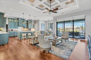 Klimatizovaný prázdninový dům 3605 Towhee nabízí 3 ložnice, TV, jídelní část, obývací prostor a kuchyň s lednicí.