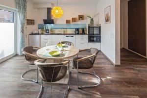 Apartmán má kabelovou TV. Kuchyň v Traum Wohnung 1 - Neubau - je vybavena lednicí, myčkou a troubou, v koupelně je sprcha a fén.