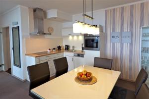 Apartmán Trelleborgallee, Fewo 128 se skládá ze 2 ložnic, obývacího pokoje, plně vybavené kuchyně s lednicí a myčkou a 1 koupelnu. V koupelně ubytování ubytování nechybí sprcha ani fén.