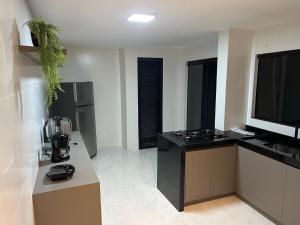 Prázdninový dům Triplex com hidro e piscina má 1 ložnici, TV s plochou obrazovkou a kuchyň.