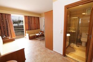 Klimatizovaný apartmán Tris Ekklisies Beachfront Apartment - Ammos tvoří 1 ložnice, obývací pokoj, plně vybavená kuchyň s lednicí a troubou a 1 koupelna. Koupelna je vybavená vanou.