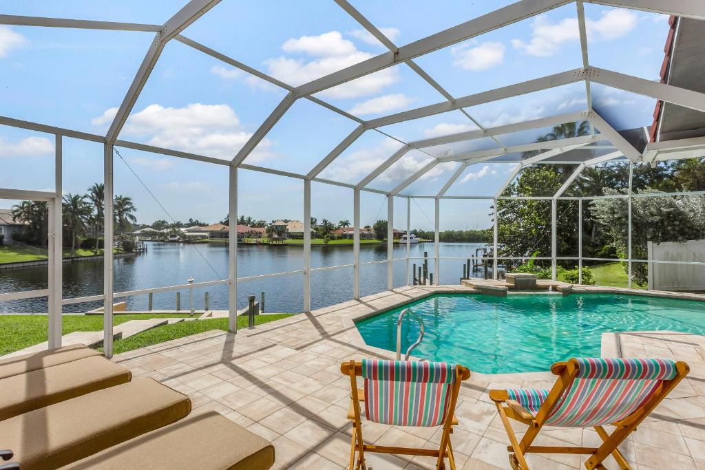 Guests will have a special experience as this holiday home offers a private pool and a fireplace. Featuring a private entrance, this spacious holiday home also comprises 5 bedrooms, a seating area and 4 bathrooms with a walk-in shower and a bath. Guests will find a stovetop, a refrigerator, a dishwasher and kitchenware in the well-fitted kitchen. The holiday home also provides guests with a barbecue. The air-conditioned holiday home provides a TV with streaming services, a washing machine, a tea and coffee maker, a dining area as well as river views. The unit offers 8 beds.