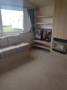 The fireplace is a top feature of this mobile home. Meals can be prepared in the well-fitted kitchen, which features a stovetop, a refrigerator, kitchenware and an oven. The mobile home features a dining area, a wardrobe, an electric kettle, a sofa, as well as a TV with streaming services. The unit has 6 beds.