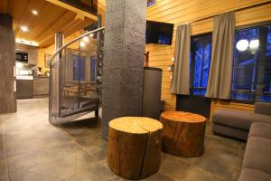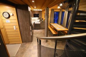 This holiday home has a dining area, coffee machine and private sauna.