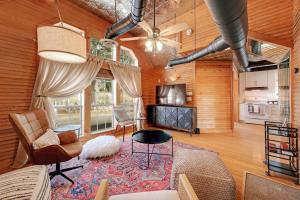 The hot tub and fireplace are the standout features of this holiday home. The well-fitted kitchen features a refrigerator, an oven and a microwave. This holiday home is air-conditioned and has a seating area with a flat-screen TV, a washing machine, a tea and coffee maker, tumble dryer, as well as heating. The unit has 3 beds.
