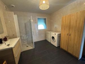 Featuring a private entrance, this holiday home also is comprised of 2 bedrooms, a seating area and 1 bathroom with a shower and a hairdryer. Meals can be prepared in the kitchen, which is fitted with a stovetop, a refrigerator, a dishwasher and an oven. Boasting a terrace with garden views, this holiday home also offers a washing machine and a flat-screen TV. The unit offers 2 beds.