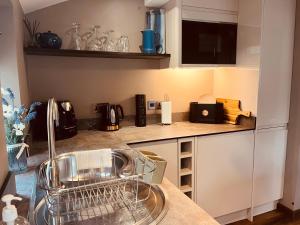 This studio's standout feature is the fireplace. In the well-equipped kitchen, guests will find a stovetop, a refrigerator, a dishwasher and kitchenware. The studio offers a washing machine, a private entrance, a terrace with an inner courtyard view as well as a private bathroom boasting a shower. The unit has 1 bed.