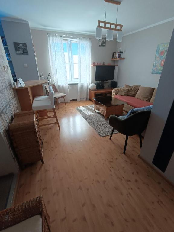 Guests can make meals in the kitchen that comes with a stovetop, a refrigerator, kitchenware and an oven. The apartment features parquet floors, a seating area with a flat-screen TV, a washing machine, a tea and coffee maker as well as city views. The unit offers 2 beds.