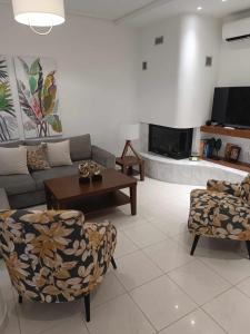 Questa villa con aria condizionata ha 3 camere da letto, TV a schermo piatto e cucina con lavastoviglie e forno. Lenzuola e asciugamani sono forniti presso Μονοκατοικία «Maizonette passaggio G».