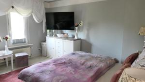 Apartmán Über den Dächern zahrnuje 1 ložnici, 1 koupelnu, ložní prádlo, ručníky, TV s plochou obrazovkou, jídelní kout a plně vybavenou kuchyň. Z terasy ubytování Über den Dächern se otevírá výhled na město. V koupelně ubytování ubytování nechybí sprcha ani fén.