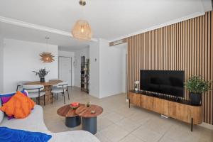 Featuring a private entrance, this air-conditioned apartment comprises 1 living room, 2 separate bedrooms and 2 bathrooms with a shower and a hairdryer. Meals can be prepared in the kitchen, which comes with a stovetop, a refrigerator, a dishwasher and kitchenware. The spacious apartment provides a washing machine, a coffee machine, a seating area, a flat-screen TV with streaming services, as well as sea views. The unit offers 3 beds.