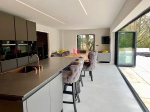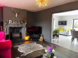 This holiday home's standout features are the hot tub and fireplace. Featuring a private entrance, this spacious holiday home also consists of 2 living rooms, 5 separate bedrooms and 5 bathrooms with a bath. Guests can make meals in the kitchen that is equipped with a stovetop, a refrigerator, a dishwasher and kitchenware. Boasting a balcony with garden views, this holiday home also provides a washing machine and a flat-screen TV with streaming services. The unit offers 9 beds.